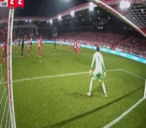 比赛的第27分钟,在柏林联合开出角球之后,凯恩封堵未果,多基右脚扫射,诺伊尔扑救失误,球从诺伊尔的腋下飞入球网。