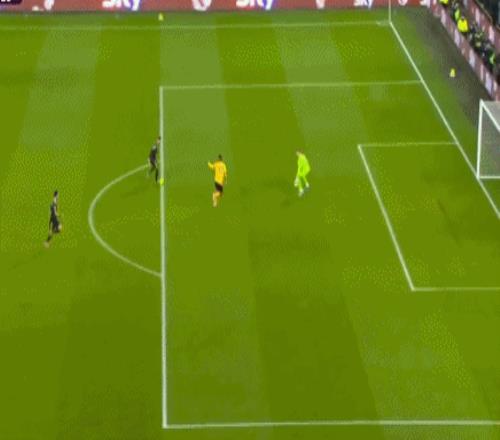 比赛第25分钟,狼队自毁长城,B费“躺着进球”:狼队后卫安德烈回传失误,直接把球传给了库尼亚。库尼亚没有吃独食,禁区内横敲B费,葡萄牙中场倒地扫射破门,曼联1-0领先。